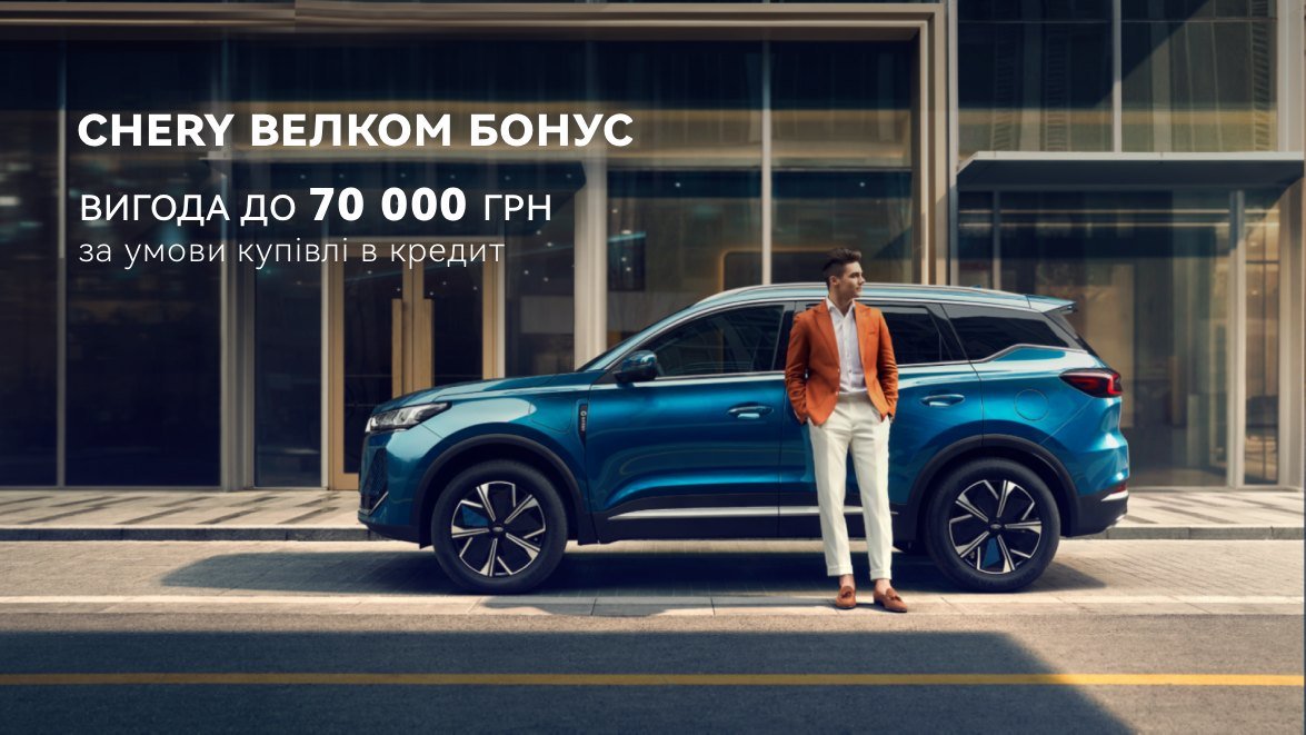 Час оновити свій вибір на користь сучасних технологій та автомобільних можливостей! ТОВ «СІ ЕЙ АВТОМОТІВ» з 01 жовтня 2025 року запускає спеціальну програму «Chery Велком Бонус»4 за якою можна придбати нові моделі CHERY з вигодою до 70 000 грн1, за умови їх придбання в кредит за спеціальними програмами від банків-партнерів, які кредитують4.